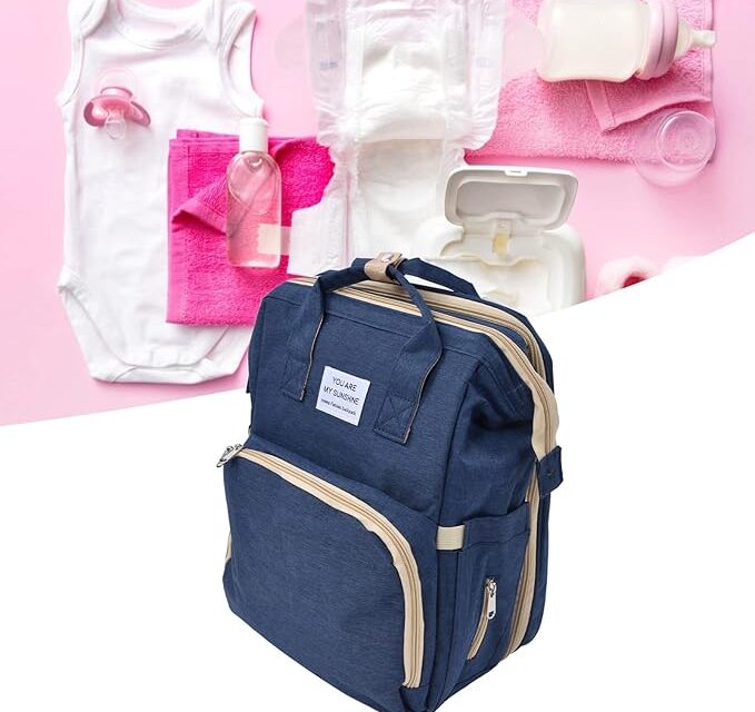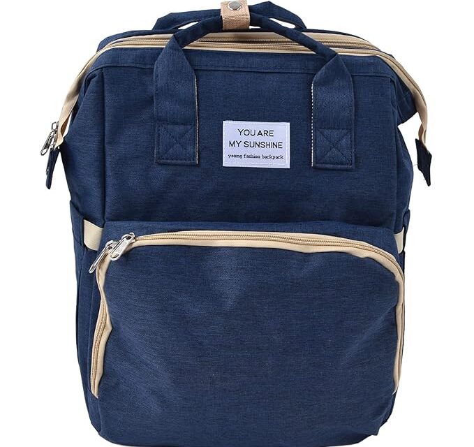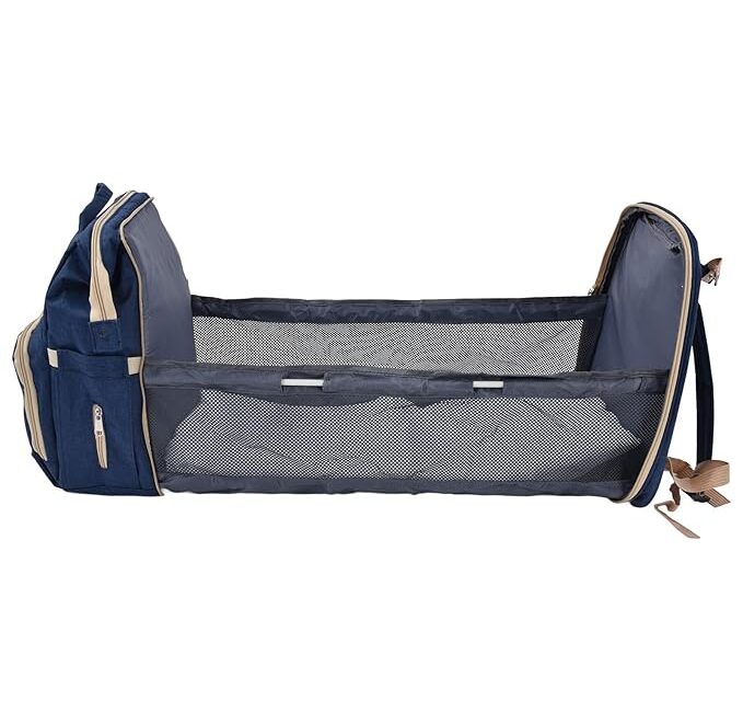 Foldable Crib Bag, Oxford Cloth Baby Diaper Bag Backpack Portable Folding Large Capacity Multifunctional for Daily Use for Bady Toddler for Travel for Mommy(Navy Blue)